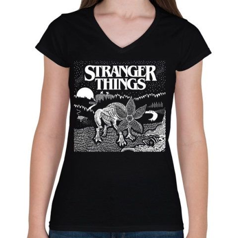 1 kép PRINTFASHION Demogorgon ST - Női V-nyakú póló - Fekete