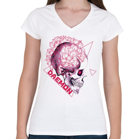 1 kép PRINTFASHION Démon - Női V-nyakú póló - Fehér