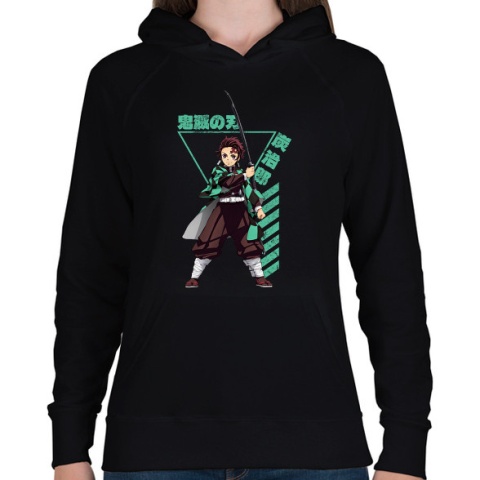 1 kép PRINTFASHION Demon Slayer Tanjirou - Női kapucnis pulóver - Fekete