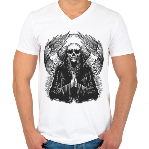 1 kép PRINTFASHION Démoni imádkozó koponya - Férfi V-nyakú póló - Fehér