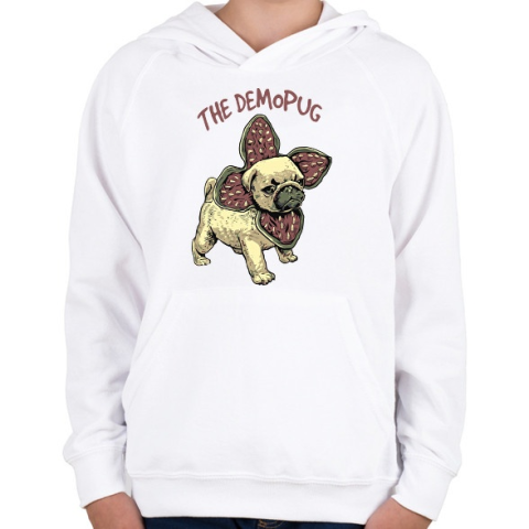 1 kép PRINTFASHION Demopug - Gyerek kapucnis pulóver - Fehér