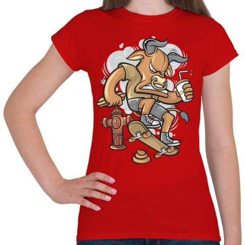 1 kép PRINTFASHION Deszkás bika - Női póló - Piros