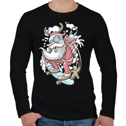 1 kép PRINTFASHION Deszkás Télapó - Férfi hosszú ujjú póló - Fekete