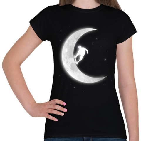 1 kép PRINTFASHION Deszkázás a holdon - Női póló - Fekete