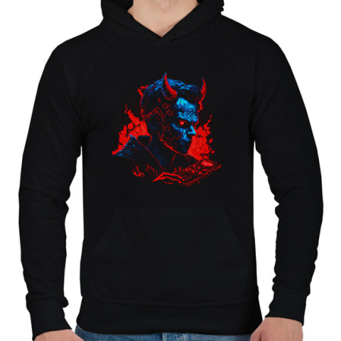 1 kép PRINTFASHION Devil design - Férfi kapucnis pulóver - Fekete
