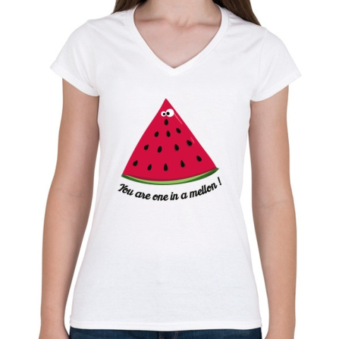 1 kép PRINTFASHION Dinnye vagy! - Női V-nyakú póló - Fehér