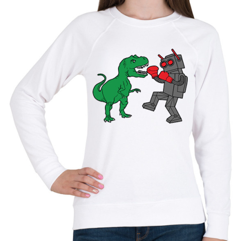 1 kép PRINTFASHION Dínó és robot - Női pulóver - Fehér