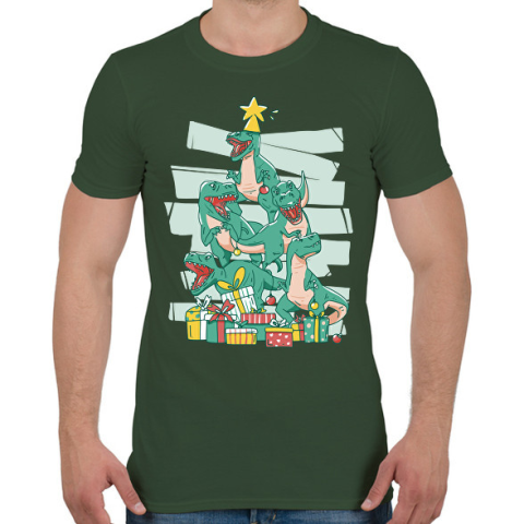 1 kép PRINTFASHION Dínó karácsonyfa - Férfi póló - Katonazöld