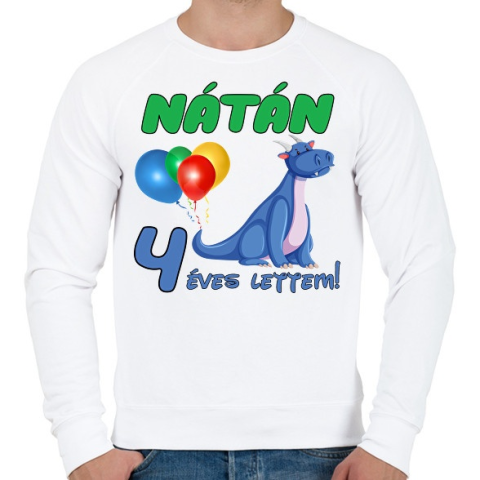1 kép PRINTFASHION Dínó szülinap (egyedi névvel) - Férfi pulóver - Fehér