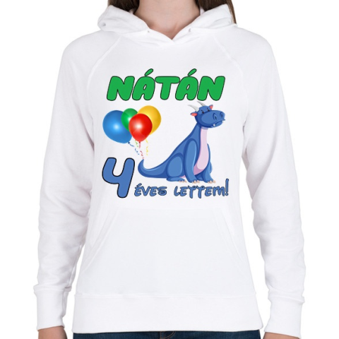 1 kép PRINTFASHION Dínó szülinap (egyedi névvel) - Női kapucnis pulóver - Fehér
