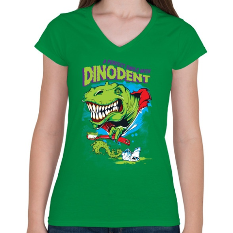 1 kép PRINTFASHION Dínófog - Női V-nyakú póló - Zöld
