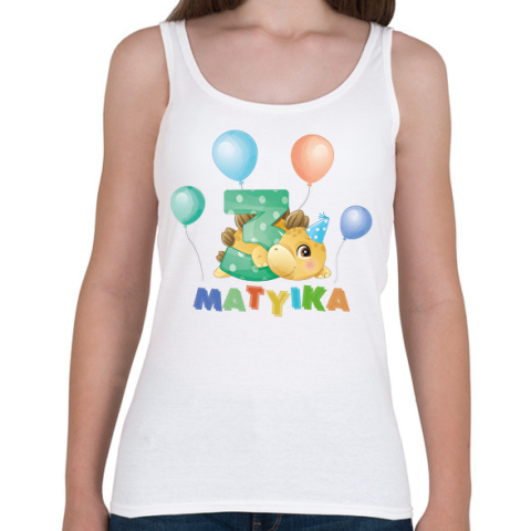 1 kép PRINTFASHION Dínós szülinap - Névvel, számmal - Női atléta - Fehér