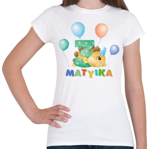 1 kép PRINTFASHION Dínós szülinap - Névvel, számmal - Női póló - Fehér