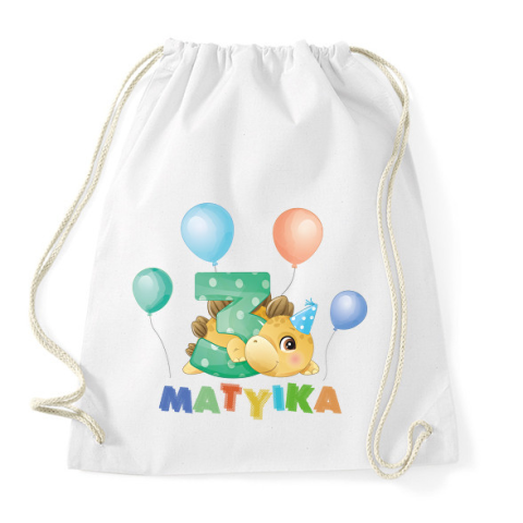 1 kép PRINTFASHION Dínós szülinap - Névvel, számmal - Sportzsák, Tornazsák - Fehér
