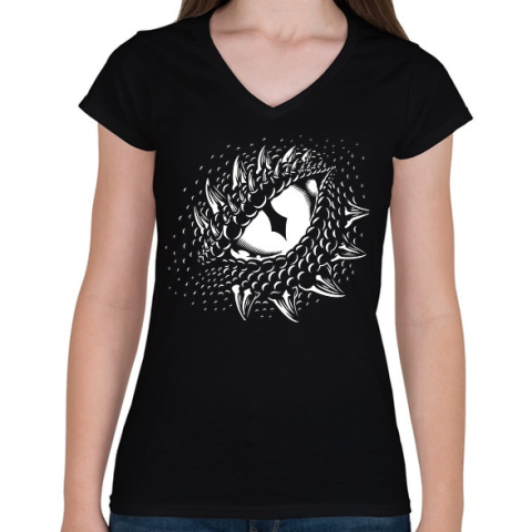 1 kép PRINTFASHION Dinoszaurusz/Sárkány szem - Fehér - Női V-nyakú póló - Fekete
