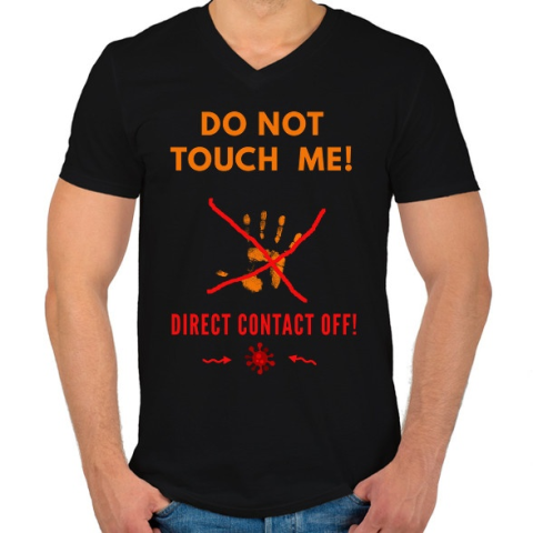 1 kép PRINTFASHION DIRECT CONTACT OFF - Férfi V-nyakú póló - Fekete
