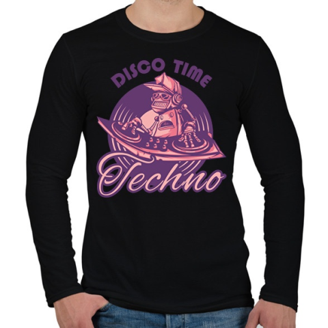 1 kép PRINTFASHION Disco Time - Techno - Férfi hosszú ujjú póló - Fekete