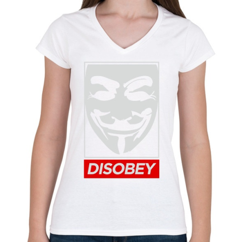 1 kép PRINTFASHION Disobey - Női V-nyakú póló - Fehér