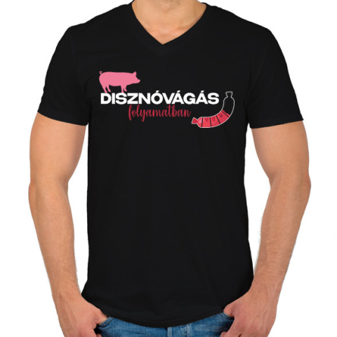 1 kép PRINTFASHION Disznóvágás folyamatban - Férfi V-nyakú póló - Fekete