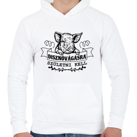 1 kép PRINTFASHION Disznóvágásra születni kell - Férfi kapucnis pulóver - Fehér