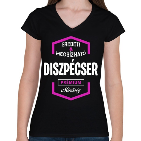 1 kép PRINTFASHION Diszpécser prémium minőség - Női V-nyakú póló - Fekete