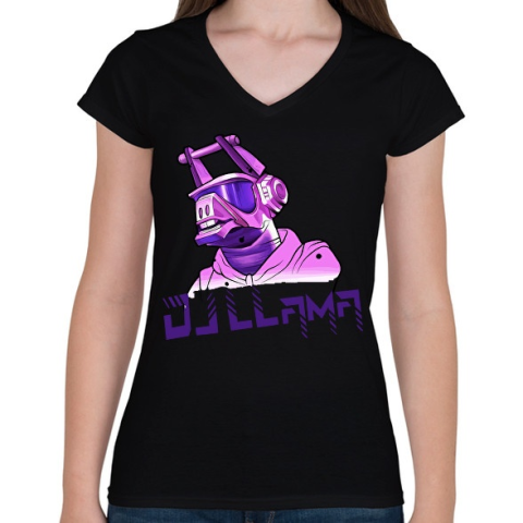 1 kép PRINTFASHION Dj LLama - Női V-nyakú póló - Fekete