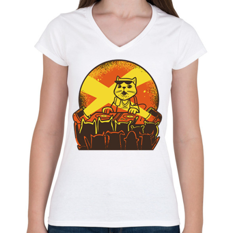 1 kép PRINTFASHION DJ macska - Női V-nyakú póló - Fehér