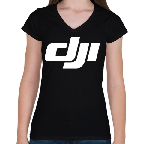1 kép PRINTFASHION Dji logo - Női V-nyakú póló - Fekete