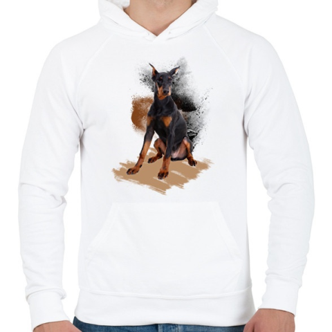 1 kép PRINTFASHION Dobermann - Férfi kapucnis pulóver - Fehér