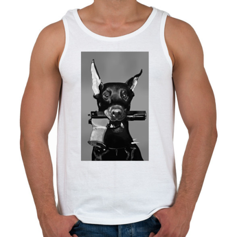 1 kép PRINTFASHION Dobermann with gun - Férfi atléta - Fehér