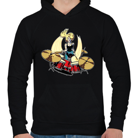 1 kép PRINTFASHION Dobos csaj - Férfi kapucnis pulóver - Fekete