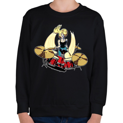 1 kép    PRINTFASHION Dobos csaj - Gyerek pulóver - Fekete