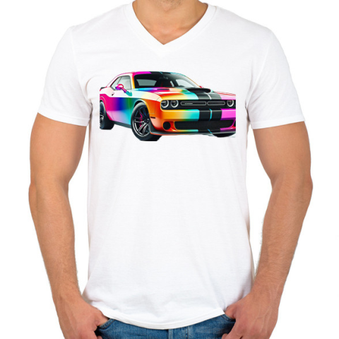 1 kép PRINTFASHION Dodge - Férfi V-nyakú póló - Fehér