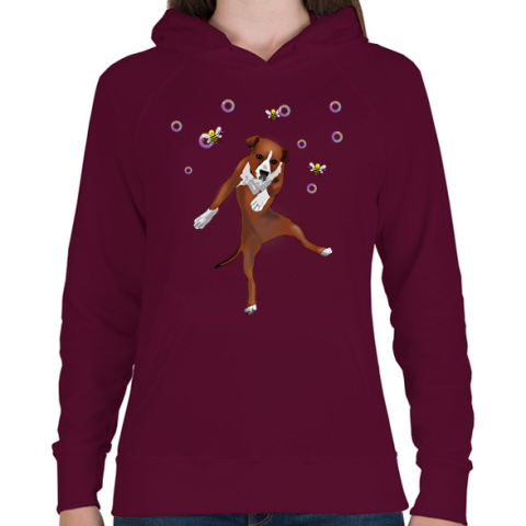 1 kép PRINTFASHION Dog dancing with bubbles - Női kapucnis pulóver - Bordó