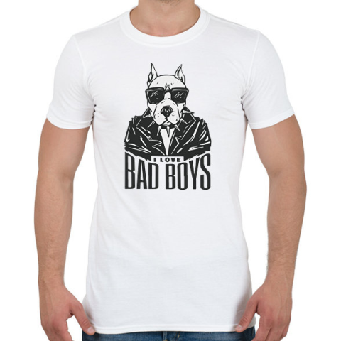 1 kép PRINTFASHION Dog face I love Bad Boys- szeretem a rosszfiúkat - Férfi póló - Fehér