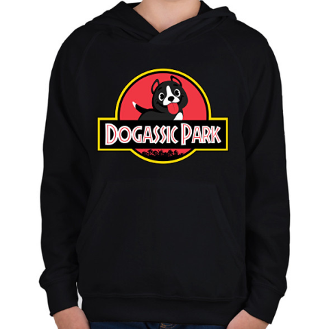 1 kép PRINTFASHION Dogassic Park - Gyerek kapucnis pulóver - Fekete