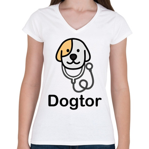 1 kép PRINTFASHION DoGtor - Női V-nyakú póló - Fehér
