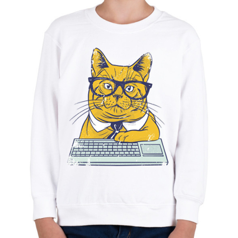 1 kép PRINTFASHION Dolgozó cica - Gyerek pulóver - Fehér