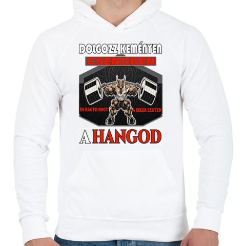 1 kép PRINTFASHION Dolgozz keményen csendben - Férfi kapucnis pulóver - Fehér