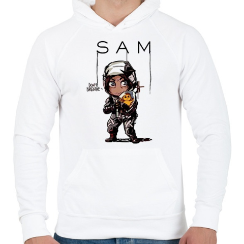 1 kép PRINTFASHION Don't breathe! Sam - Férfi kapucnis pulóver - Fehér