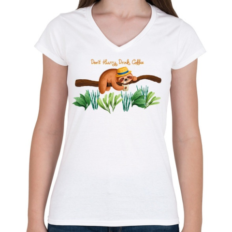 1 kép PRINTFASHION Don't hurry Drink coffee - Női V-nyakú póló - Fehér