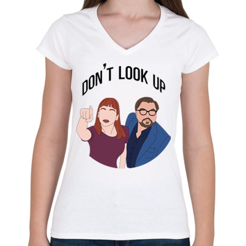 1 kép PRINTFASHION Don't look up - Női V-nyakú póló - Fehér