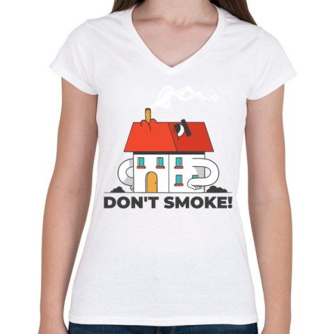 1 kép PRINTFASHION Don't smoke - Női V-nyakú póló - Fehér