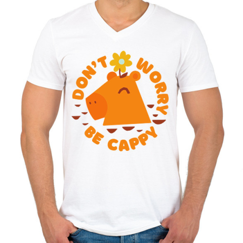 1 kép PRINTFASHION Don't worry be Cappy! - Férfi V-nyakú póló - Fehér