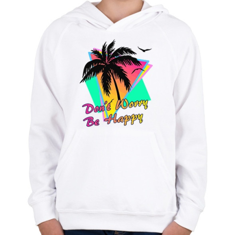 1 kép PRINTFASHION Don't worry, be happy - Gyerek kapucnis pulóver - Fehér