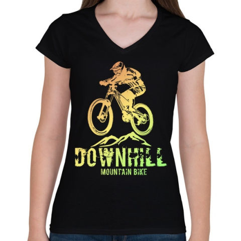 1 kép PRINTFASHION downhill - Női V-nyakú póló - Fekete