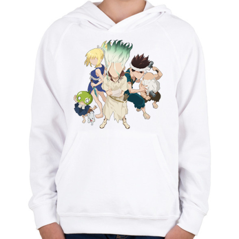 1 kép PRINTFASHION Dr. Stone team - Gyerek kapucnis pulóver - Fehér