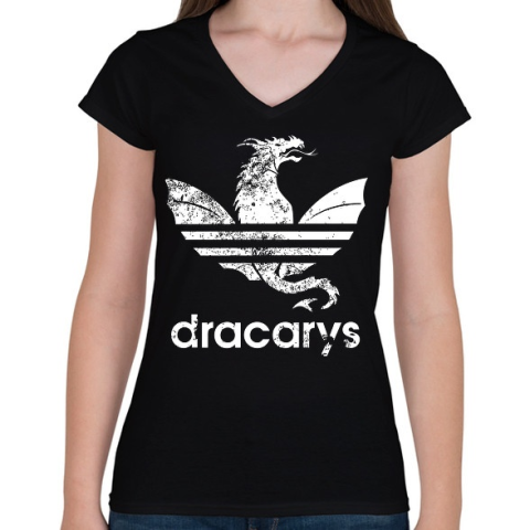 1 kép PRINTFASHION dracarys fehér - Női V-nyakú póló - Fekete