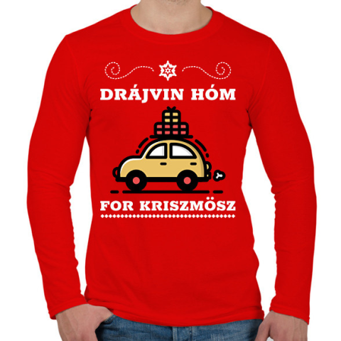 1 kép PRINTFASHION DRÁJVIN HÓM - Férfi hosszú ujjú póló - Piros