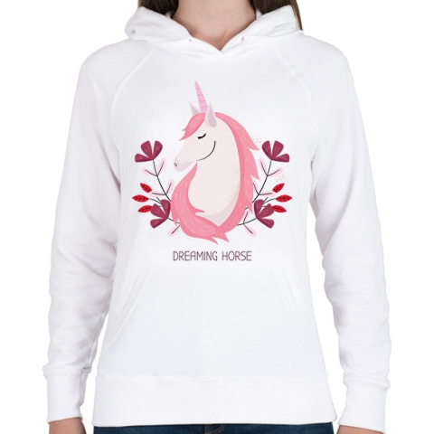 1 kép PRINTFASHION Dreaming horse - Női kapucnis pulóver - Fehér